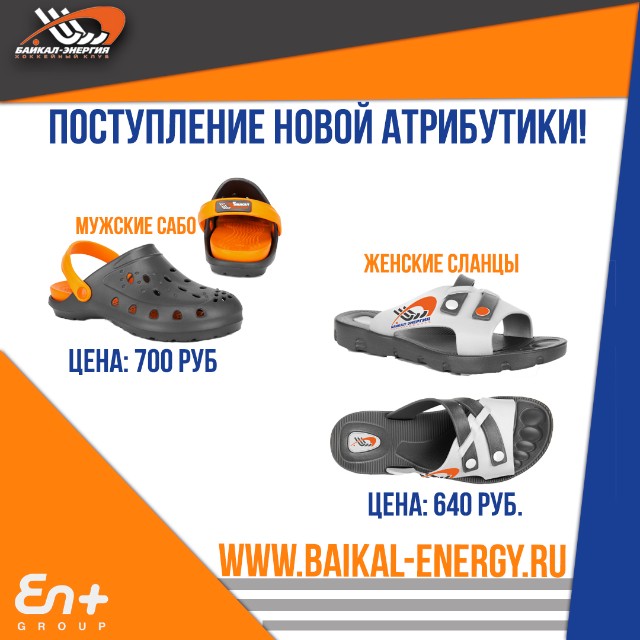 Хоккейный клуб «Байкал-Энергия» и бренд ALL. GO (фабрика Обувь России) создали для вас эксклюзивную коллаборацию — это стильная линейка летней обуви. Обувь из антибактериального материала ЭВА для комфорта вашей стопы. Материал имеет множество особенностей, благоприятных для здоровья: