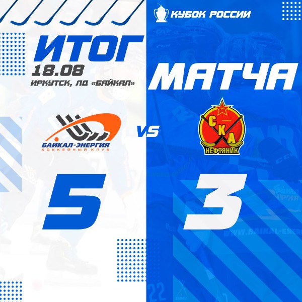 18 августа 2023 г. Иркутск, 19:00. ЛД "Байкал", 1389 зрителей. Кубок России, 1-этап.