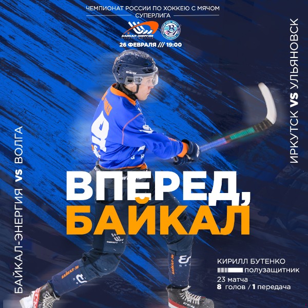 До завершения регулярного чемпионата России осталось всего 2 тура и эти 2 тура пройдет в Иркутске! 26 февраля хоккеисты «Байкал-Энергии» проведут встречу против ульяновской «Волги».