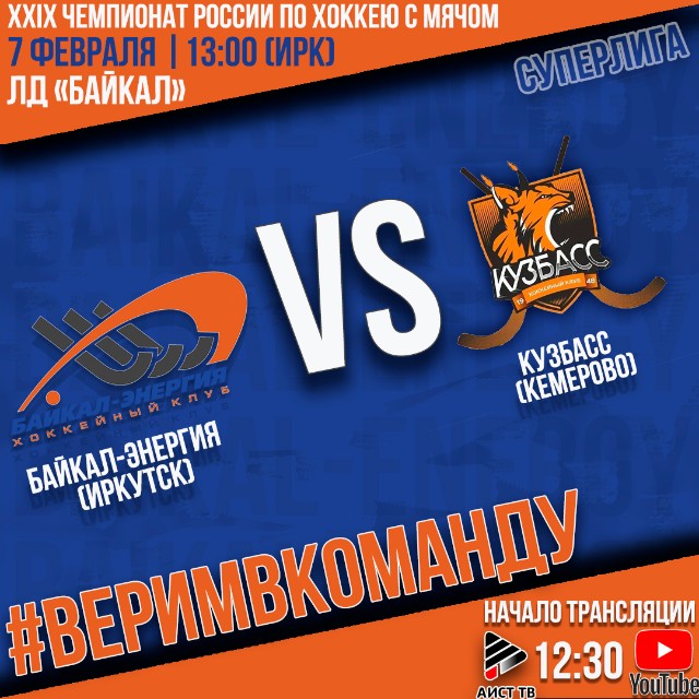 Прямую трансляцию смотрите на YouTube-канале ХК «Байкал-Энергия», а также на телеканале «АИСТ ТВ». Начало трансляции в 12:30