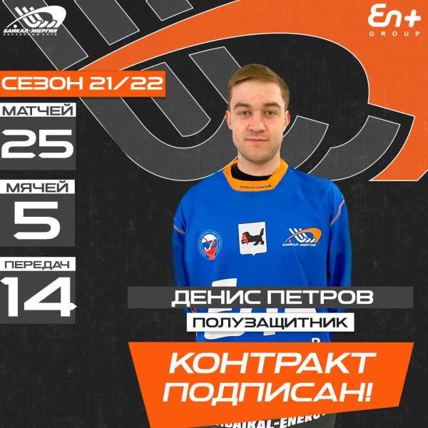 Хоккейный клуб «Байкал-Энергия» и генеральный спонсор команды компания En+ Group объявляют о подписании контракта с полузащитником Денисом Петровым!