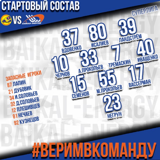 ️Стартовый состав «Байкал-Энергии» против «Мурмана» (Мурманск)!