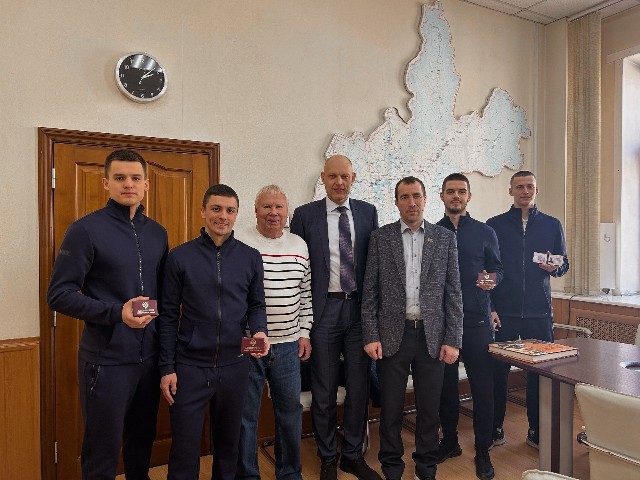 Сегодня министр спорта Иркутской области Виктор Николаевич Учеватов вручил удостоверения мастеров спорта России по хоккею с мячом четырём игрокам «Байкал-Энергии».