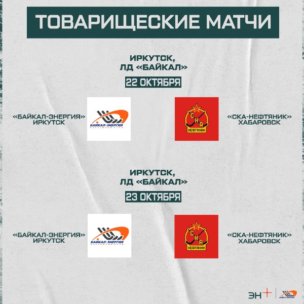 Контрольные встречи запланированы на 22 и 23 октября в ледовом дворце «Байкал». Подробности о товарищеских встречах сообщим позднее.