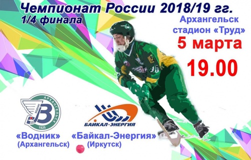 Представляем прямую видеотрансляцию матча ¼ финала чемпионата России «Водник» (Архангельск) — «Байкал-Энергия» (Иркутск). Начнётся она 5 марта в 19.00 московского / 24.00 иркутского времени.