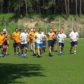 И на этот раз премьерная тренировка мало чем отличалась от стартовых тренировок прошлых лет: пробежка, разминочные упражнения, игра в «квадрат», ручной мяч и футбол на половину поля. Два часа под набравшим свою летнюю мощь солнцем.